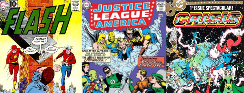 Ever since the 1938 introduction of Clark Kent/Superman, DC Comics has been known for its vast array of costumed crimefighters and interconnected, densely populated fictional narratives. For decades, continuity was played fast and loose; Superman evolved from being a moderately powerful superhuman who could leap over tall buildings into a God-like figure who could turn back time, possessed a super-human intellect, and could tow entire worlds through space with ease. Similarly, Bruce Wayne/Batman was depicted as being as youthful as ever despite having been active since 1939 and having taken part in World War Two. Some of these issues were resolved when, in the 123rd issue of The Flash, DC Comics introduced the concept of the multiverse. The issue postulated that there were an infinite number of parallel worlds co-existing in the same space and time but slightly out of synch with our own world due to being on a different vibrational frequency. The fallout from “Flash of Two Worlds” (Fox, et al) was the revelation that DC’s Golden Age superheroes, such as the Justice Society of America and older versions of Superman and Batman, existed on the parallel world known as Earth-Two while their Silver Age contemporaries (Hal Jordan, Barry Allen, and the like) in the Justice League of America existed on Earth-One.