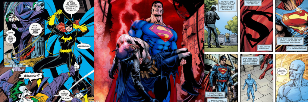 However, rather than fully capitalise on this (by, say, returning Bruce Wayne to life as an aged man, killing off Alfred, and having an elderly Wayne take his place as mentor to the new Batman and Robin), DC instead decided to undo all of their recent efforts a mere two years after the end of Final Crisis. The best thing about Final Crisis was the fallout; Batman, thought dead, actually embarked on a trip through time and space that threatened all reality until he was safely returned home by the Justice League. However, in the meantime, his duties were performed by Dick Grayson and Damian Wayne as an all-new, fresh take on the Batman and Robin duo. Additionally, both Kon-El and Bart Allen were resurrected and, for fans of the Silver Age, Barry Allen finally returned to the land of the living to become the Flash once more (though, personally, I am more of a fan of Wally West). In Flashpoint (Johns, et al, 2011), Barry Allen’s grief apparently got the better of him, causing him to go back in time and save his mother’s life. This results in a vastly altered timeline, which threatens to solidify itself as the true reality unless Barry can set things right. Teaming up with Thomas Wayne, here a violent version of Batman, and amidst an ongoing war between Atlantis and the Amazons, the Reverse-Flash reveals the key to restoring reality to Barry, allowing him to undo his actions. However, instead, we got what DC marketed as the “New 52” reality for the better part of five years. In this radically altered version of events, the DC universe has only existed for five years (meaning that Batman burned through one Robin every year-and-a-half or so), Barbara Gordon controversially recovered from the Joker’s attack and continued to fight crime as Batgirl, and many characters got entirely new origin stories (Superboy, Supergirl, and, in particular, Superman was changed so drastically that I swear he was a completely different character).