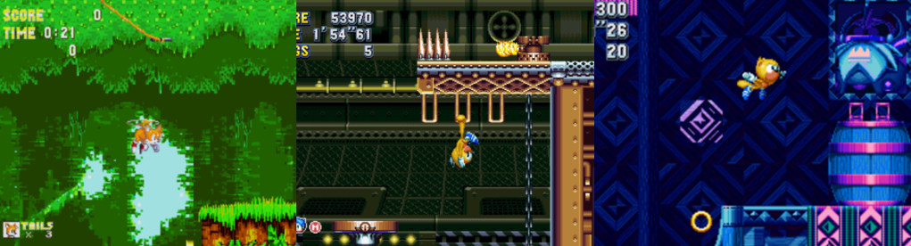 This would, of course, eventually become Knuckles the Echidna but they could just as easily have revived Mighty as the guardian of the floating Angel Island. Similarly, although SEGASonic the Hedgehog released some time after Sonic the Hedgehog 2 (SEGA Technical Institute, 1992), it isn’t exactly inconceivable that the result of their internal design for Sonic’s sidekick would have resulted in Ray’s early debut and his replacing of Tails. Therefore, imagine, if you will, a slightly different turn of events. Instead of Yasushi Yamaguchi dreaming up the plucky two-tailed fox, Manabu Kusunoki’s Ray is submitted and approved for Sonic 2. Remember that, in Sonic 2, Tails never carried Sonic and, instead, controlled exactly the same; therefore, all Ray would be required to do would be to jump, roll, Spin Dash, and glide down from the heavens in two-player mode. Therefore, Ray would fit in really well with Sonic 2’s restrictions. In Sonic 3, though, Tails obviously carried Sonic in two-player modes and for the Marble Garden Zone boss. It’s difficult to imagine Ray being capable of this, so that aspect of the videogame would ultimately have been lost, however it’s very easy to see Ray borrowing Tails’ swimming mechanic, Knuckles’ glide to manoeuvre around stages, and possibly some kind of swinging mechanic using his bushy tail. While the absence of full-on flight would have been lost from the Triple Threat’s moveset in subsequent 3D titles, Ray could easily have adopted the 3D gliding of Knuckles and possibly even a spring-loaded jump of sorts