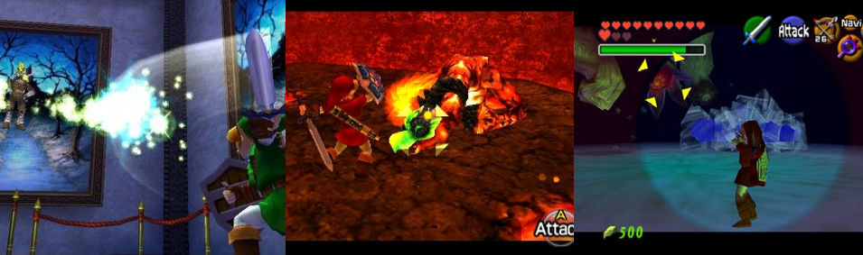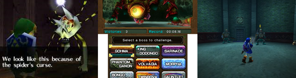 This version of the game comes with some lucrative additional features; while it unfortunately doesn’t add back in the Sword Beam or Unicorn FountainOcarina of Time 3D includes a “Boss Challenge”, accessible from Link’s house after clearing the Forest Temple, which is essentially a boss rush against all the game’s bosses against a time limit and with limited health and items. However, a far more substantial inclusion is “Master Quest”, which is unlocked upon first beating them game. Although previously included in the “limited edition” releases of The Legend of Zelda: The Wind Waker (Nintendo EAD, 2002), this much tougher version of the game has been tweaked here to mirror the entire game. “Master Quest” also noticeably mixes up the puzzles and enemy placements, offering a substantial challenge even for seasoned players as tougher enemies and more difficult puzzles appear as early as Kokiri Forest; even the Gold Skulltula locations have changed, and you can also test yourself against the “Boss Challenge” for this mode, too, which stands as a much appreciated inclusion for long-time players of Ocarina of Time. Finally, you can still teach a friendly scarecrow a custom song, win yourself a cow by racing Ingo, hunt down the Big Poes haunting Hyrule Field, try and snag the elusive Hylian Loach, and this version of the game gives the option of using the Nintendo 3DS’s gyroscopic controls (which, again, I wouldn’t recommend), and removes and changes some of the blood effects.