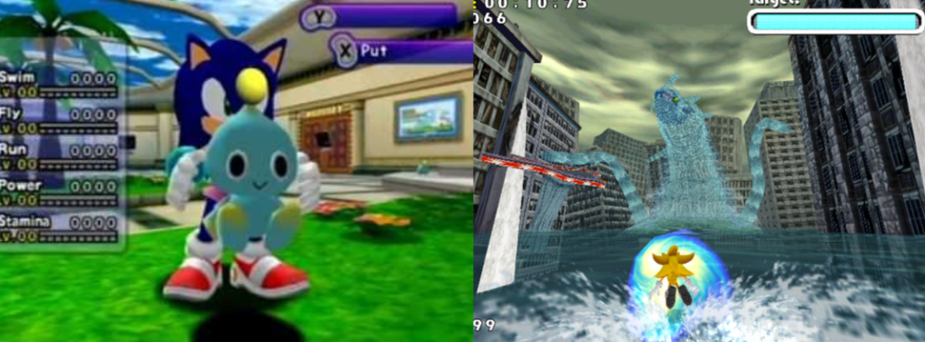 For gamers more used to Sonic’s most recent titles, Sonic Adventure may seem a bit of a shock as it also includes a whole host of additional characters to play as. Miles “Tails” Prower must race, usually against Sonic, to reach a goal first, using his twin tails to fly and attack enemies; Knuckles the Echidna must glide, climb, and dig through stages to find fragments of the Master Emerald; and Amy Rose has to use her Piko-Piko Hammer to evade the invincible ZERO. Sonic Adventure also introduced gunplay to the Sonic series for the first time by allowing players to blast through stages as the tragic robot E-102γ (or simply “Gamma”) and one of the most divisive characters of the entire franchise, Big the Cat, a massive, slow-witted cat who has to fish for his elusive friend, Froggy.