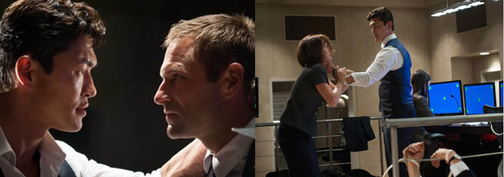 Kang and his cohorts are reprehensible, merciless terrorists who gun down countless members of the White House security team in an unprecedented ground assault, completely taking everyone by surprise, and of which Mike ends up being, again, the sole survivor inside the now ravaged White House. Of course, it turns out that they were aided in their efforts by Dave Forbes (McDermott), a former Secret Service agent and trusted friend of Mike’s who sells out his country after losing his way. Forbes is positioned as Mike’s dark reflection, a corruption of the ideals he fights so hard to uphold, and their inevitable showdown is framed in a way to present Mike as fighting someone as trained as capable as he. Of course, Mike is able to overcome this challenge with grit and determination and, having delivered a clean, effective, mortal blow, offers Forbes the chance at redemption before he dies.