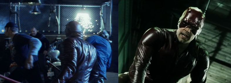 Daredevil was released at a time when superhero movies were just really starting to hit their stride; they weren’t the multimedia juggernaut they are today thanks to the efforts of Marvel Studios and Disney so, while there were many highly regarded and influential superhero films released in the early 2000s, not all of them were guaranteed smash hits and even the ones that were haven’t exactly aged well (or have been done better) since then. As a result, most superhero films tended to feature a major focus on the character’s origin, a lot of fast-paced and frenetic action scenes, and a plot that moved at a relatively brisk pace to cover a lot of ground as quickly as possible. They, like many other action films of the time, were also heavily influenced by (or blatantly ripping off) The Matrix (The Wachowski Brothers, 1999) so black leather, “wire-fu”, and CGI were plentiful during this time and, of all the superhero movies released in the early 2000s, perhaps nowhere are all these now-cliché elements more apparent than in Daredevil.