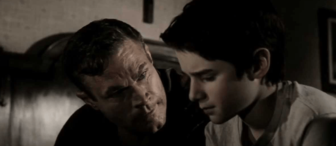 We’re thus introduced to Murdock first as a battered and injured vigilante and then, very quickly as a young kid (Scott Terra) from Hell’s Kitchen who is constantly harassed by a gang of local youths. These bullies like to rag on young Matt because his father, Jack Murdock (David Keith), is not only an over-the-hill, washed up prize-fighter who once fought under the name “The Devil” and wore a devil-themed robe to the ring but has now taken to working as an enforcer for Fallon (Mark Margolis), a local mob boss. Matt, maintaining a staunch belief in his father’s glory days, accolades, and abilities, stands up to such bullies and trash talk and takes a beating as a result, much to the dismay of his father. Jack, however, wants more from Matt and discourages him from fighting, wishing instead for Matt to devote himself to his studies and to make something of himself and it is clear from their brief scenes together that the two have a very strong relationship, one built on mutual trust, respect, and dependency. Jack is determined to have Matt grow up unafraid, to be the best version of himself, and to not be a “bum like [him]” but this goes so far that he is too ashamed and too despondent to admit that he really has been forced to rough people up on Fallon’s behalf in order to provide for his family. The very next scene shows Matt witnessing this and, distraught and heartbroken, he flees from the sight only to end up narrowly avoiding a collision and being blinded by a biohazardous waste product as a result.