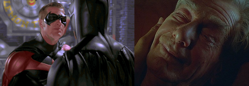 Dialogue between Bruce and Alfred reveals that Bruce doesn’t trust Dick to not get hurt and the crux of Bruce’s arc in this film; he’s afraid to trust, afraid to love, and afraid of the concept of them being a true family and partnership. He initially balks at this since he trusts Alfred but Alfred gently advise that he “shan’t be [there] forever”. He desperately tries to talk sense into Dick, whose resentment is fuelled by Poison Ivy’s influence, and his arc is about recognising the family dynamic they all have and trusting Dick to be responsible in his own way. Similar to Kilmer’s arc in Forever, though, the resolution to this is somewhat anti-climatic as Bruce is eventually able to get Dick back on side by repeating his own words about trust and family back to him in an exchange that includes a standout line (“She wants to kill you, Dick”) that never fails to get a snort of laughter out of me. Ultimately, though, there are a lot of Clooney apologists out there who will swear blind that he is capable of putting in a good performance as the character with a better script or direction; well, I would counter argue that these beliefs are based on Clooney’s abilities today; back in 1997, he was a goofy, bland choice (even he admitted that he was miscast in the role) clearly motivated by the actor’s popularity on ER (1994 to 2009) and, while his inclusion isn’t the worst part of the film, it’s certainly a significantly disruptive cog that left the franchise dead in the water and no amount of accolades or improvements in his ability can ever shake my dislike for Clooney as an actor.