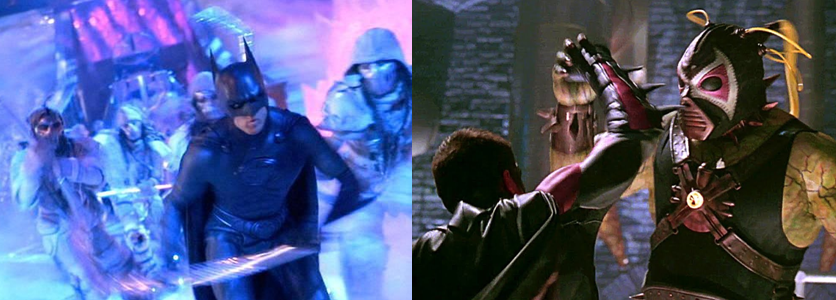 Essentially, Batman & Robin is almost beat-for-beat the same movie as Batman Forever: the score is largely unchanged; there’s a suit-up scene at the start with a cringey one-liner; a big, explosive fight with the new supervillain; a cliché villain team-up, a falling out between Bruce and Dick; and a new Bat-character is introduced, learns of their identities, before joining them for a big, climatic showdown featuring new suits and vehicles. Honestly, I actually dig the film’s costume design; the Batsuit isn’t that great but I actually like that it’s lacking any yellow colouring, Robin’s Nightwing suit is picture perfect, and Batgirl’s tight outfit is great for showing off her curves. Yes, the suits have nipples and clearly resemble rubber more than armour but I kind of get what Schumacher was going for with the design and it’s honestly not as distracting as some people make out. Frankly, if you’re spending your time fixated solely on Batman and Robin’s nipples then I think you might have a bit of a problem since there’s a lot of worse stuff in the film (the zany, madcap presentation, for example, is far worse since it’s just a hyperactive kids’ movie and little more than an expensive advertisement for a new line of Batman toys).