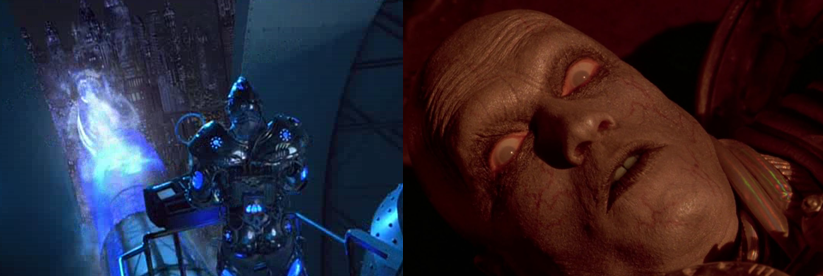 However, as bombastic and over the top as Batman Forever’s finale was, Batman & Robin’s really takes the cake with Mr. Freeze using his diamond-powered gizmo to transform Bruce’s massive new telescope into a giant freezing cannon and cover the city in ice. Batman, Robin, and Batgirl race across the frozen city streets in their fancy new toys vehicles, scale the mountainous telescope, and then battle both Bane and Mr. Freeze over control of the telescope, maddeningly using satellites to…somehow…reflect sunlight from across the globe (why was satellite control even programmed into the telescope’s controls? Mr. Freeze wouldn’t have needed it for his plan and I don’t see how moving satellites would help with observing stars and planets…) to thaw out the city and put an end to Mr. Freeze’s mad designs. In the end, though, Batman takes pity on Mr. Freeze and appeals to his better nature, securing both a cure for Alfred and arranging for Freeze to continue his research at Arkham Asylum. I find it very interesting that the filmmakers utilised Mr. Freeze, of all of Batman’s rogue’s gallery, and can’t help but think that Doctor Jonathan Crane/The Scarecrow would have made for a far better villain (why is he even called “Mr. Freeze” anyway? The guy’s got a PhD! He’s underselling himself! He should be “Dr. Freeze!”). They could have consolidated Freeze and Ivy’s storylines into one villain, since both of their goals are easily adapted to suit Scarecrow, and told a far more grounded, intricate story about fear and overcoming it but that probably wouldn’t sell anywhere near as many toys now would it? While Batman doesn’t partake in any direct instances of murder in this film, Mr. Freeze is quite dark at times, declaring at one point his intention to “pull Batman’s heart from his body and watch it freeze in [his] hands” and there’s a lot of double entendre sand innuendo involving Poison Ivy that I find amusing was deemed acceptable by all those soccer moms who complained about how dark and inappropriate Burton’s films were.