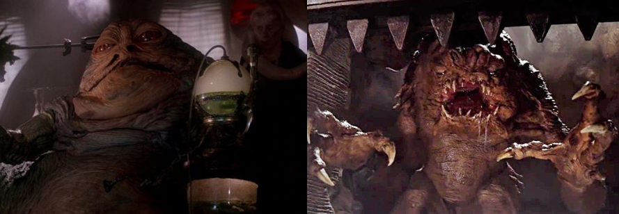 Return of the Jedi really ups the ante when it comes to practical and special effects; it’s truly a shame to see what a mess Lucas made of the Prequel Trilogy by relying so heavily on computer-generated characters and effects when the standards for the suits and puppets and stop motion work were so high in Jedi. Jabba makes an immediate impression thanks to being a huge, tangible puppet; slimy and disgusting, he’s little more than a lackadaisical slug but is so expressive and lifelike that you really buy into his presence and menace.