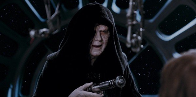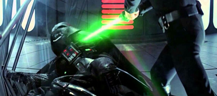 Ultimately, though, Vader willingly engages his son in the most brutal and emotionally charged lightsaber battle of the saga so far; like the Emperor, Vader taunts Luke, threatening his friends and sister to goad him into giving in to his hatred and anger. This works a little too well, however, as Luke flies into a rage and relentlessly pummels Vader, severing his cybernetic arm and rendering him beaten and helpless. Now held at the mercy of Luke’s lightsaber in a thematic reversal of the conclusion to their last battle, Vader wheezes helplessly on the floor, even holding a hand up as if to ward off Luke’s wrath and it is only when Luke compares his own cybernetic hand to Vader’s prosthetics that he realises how alike they truly are and he dramatically casts aside his lightsaber and refuses to kill his father. Insulted and angered, the Emperor unleashes his full power on Luke and reveals a peak at the true destructive potential of the Force; prior to Jedi, the Force was an abstract concept with a multitude of uses but never truly tangibly seen onscreen but the Emperor’s devastating Force Lightning changes that and it’s extremely unsettling to see him cackling away and taking such pleasure in roasting Luke alive.