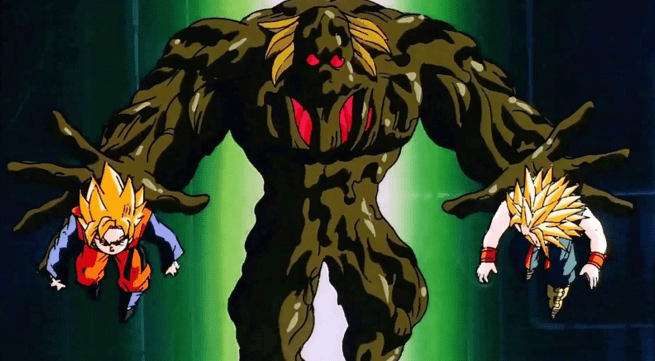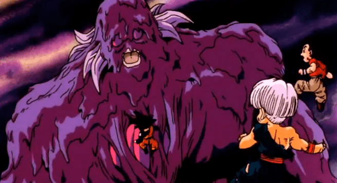 This time around, there’s no magic assistance from dead fathers or other Saiyans; Goten and Trunks are just as physically outmatched as ever and, thankfully, never depicted as being physically capable of matching or besting Broly’s power. Instead, they have to rely on dousing Broly in a caustic liquid that dissolves him on a cellular level; while this does initially cause Broly to transform even further into a gigantic goo creature, he simply collapses from the strain of the damage. I can’t help but feel like the film would have been a little better if Broly had retained his usual appearance for the majority of his screen time, exhibiting new or enhanced abilities (elasticity and near-instant cellular regeneration), and not assumed his monstrous, gunk-covered form until the end of the film. At least then he’d be far more imposing and interesting to look at rather than being reduced to a mindless sludge monster.