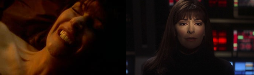 Again, though, the bulk of the film’s focus is on Picard and Data; given the plot of the film, this isn’t entirely unsurprising but it is still a bit disappointing. Riker and Troi’s long-overdue wedding is a central focus of the early part of the film but, very quickly, Riker is pushed to the background as simply a voice of concern among Picard’s crew. Troi gets an interesting sub-plot where Shinzon, enamoured by her appearance, initiates a mental invasion of her mind via his viceroy that is a very blatant allegory for rape but, again, this is only briefly touched upon. Clearly Troi is affected by this experience and she does get to extract a measure of revenge against her tormentors, but she also disappears for a lot of the film between these two events. Similarly, Doctor Beverly Crusher (Gates McFadden) is barely in the film, Lieutenant Commander Geordi La Forge (LeVar Burton) exists mainly to debate the merits of B-4’s potential, and Worf doesn’t really get much of anything to do but man (Klingon?) the phaser banks.