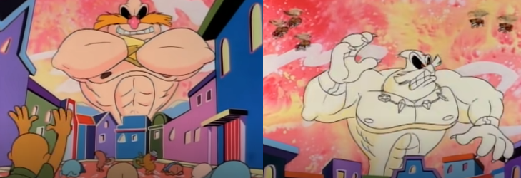 I’m going to leave a comment here from the point of view of a macrophile who is into muscle and size growth/expansion. When I first saw this episode in like, I think I was in junior high , it profoundly triggered me. I have written or imagined, over the years, countless, I mean like literally hundreds, of treatments about different outcomes after he ascends to godhood. I love imagining him ruling mobius for aeons. You know the episode “Super Robotnik,” where he gains powers from a crazy chemical concoction and he subdues all the world leaders as hostages? I wish they had used that story line in Prehistoric Sonic, I would have loved to see him approaching the various regional capitols , towering hundred(s) of feet over their government centers while the dejected existing president/ruler is forced to march of shame to his new master who keeps him unceremoniously locked in a cage and humiliated in front of his former subjects. I know these are all different continuities and not the same universe but I’d love to see the humans of Station Square blissfully unaware under their mountain feel the tremors grow in intensity one day, their dispositions much more like modern humans, maybe in disbelief that chaos emeralds /chaos energy is even real, when suddenly a huge swath of their protective mountainside covering collapses and they turn , blinded by the Mobian sun now streaming in the novel hole that just formed in their earthen hideaway, until almost instantly a shadow blocks it again while you blink multiple times in disbelief trying to make your eyes adjust, that the silhouette of a mountain you are watching has human movements and a voice…. and then your eyes adjust and have to bulge back out when you process you are looking at some several hundred foot tall muscled god staring in at his new discovery like a hungry predator. Now all of Station Square are immediately his slaves too, as he just goats and reigns supreme with the absolute power to snuff out every life on Mobius in an instant if he so desired. I love that the first thing he did was go over to a town and make people worship him, t oo.THat’s exactly what i’d do.