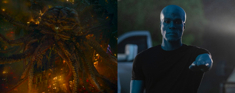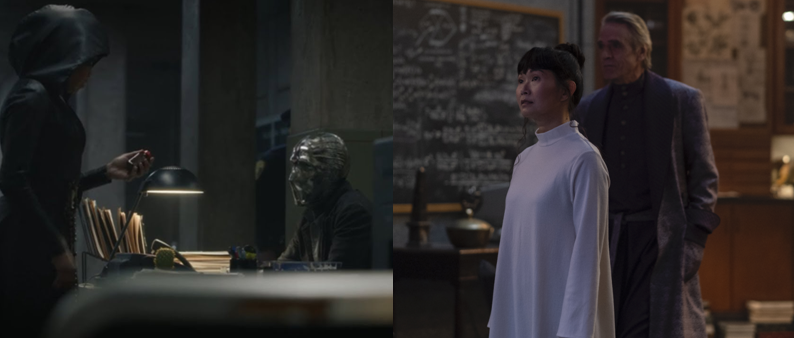 However, flashbacks to earlier years before his imprisonment and subsequent focus on his current mindset show Veidt as being quite the hypocritical and egocentric character; while this was, to be fair, evident in the comic book, here Veidt actually records a message to President Redford admitting to having concocted the squid as an elaborate hoax and is visibly insulted and frustrated at Redford rebuking his attempts to form a partnership and the fact that he receives no credit for having “saved the world”. As a result of this, and having grown jaded and frustrated at the continued production of weapons and nuclear deterrents (which I find odd as obviously the world would want to arm/prepare itself for a possible alien invasion), Veidt retires to Karnak to live in solitude and is dismayed and affronted to find, upon his return, that the world not only believes him dead but has largely forgotten about him. In Veidt’s place is Lady Trieu (Chau), his unwanted biological daughter, who takes Veidt’s vision for a world united by peace and prosperity and further defiles it through a complex plan to find, kidnap, and destroy Dr. Manhattan so that she can assume his abilities and reshape the world. Senator Keene has similar aspirations, wishing to be the first “superman” in the Oval Office, but only Trieu has the resources and knowledge to actually pull off such a plan. Oddly, her aspirations to assume Manhattan’s Godhood are shocking even to Veidt, despite his attempts to destroy Manhattan in the past, forcing Veidt into an uneasy alliance with Blake, Looking Glass, and Angela to keep Trieu from becoming the new Dr. Manhattan.