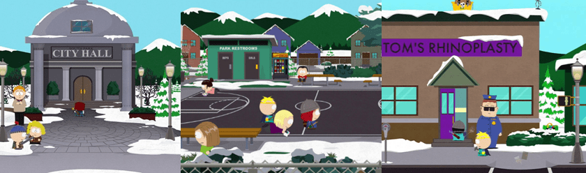 South Park: The Stick of Truth is a 2.5D, sidescrolling action/adventure game with heavy elements of role-playing mechanics and an emphasis on story, character interactions, side quests, and acquiring new weapons, armour, and buffs. When you first start the game, you’re tasked with creating your avatar, the otherwise-entirely-silent “New Kid”; here, you’re given a few options to customise the New Kid’s hair, skin tone, clothing, and other elements before you’re thrust into the game’s story and tasked with exploring the quiet little mountain town of South Park.
