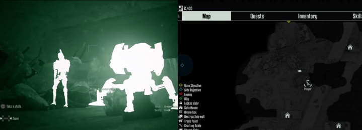 To aid you in getting about during these vulnerable times, you can press in the right analogue stuck to use the Ultravision Goggles, which let you see through walls to a limited extent, point our nearby machines, and show you their health and current weapon (though, annoyingly, you can neither attack or run while using these goggles). You can also enter vents to get around, close and barricade doors to slow the machines down, and toggle a torch (or “flashlight” for you Americans) by pressing down on the directional-pad (D-Pad). A helpful mini map is located in the very clean and limited heads-up display (HUD) and you can bring up a bigger map of the immediate area, and a list of your current objectives and side quests and such, by pressing ‘Select’. Eventually, you do acquire firearms which, like the enemies you encounter, start small and ramp up as the game progresses; you start off with a pistol and a shotgun battling smaller machines or drones, before eventually acquiring the iconic Phase Plasma Rifle and battling variations of the T-800s. Every time you destroy a machine, complete side quests or missions, or find notes and Skill Books you can increase your skills by spending experience points (XP) on one of three skill trees: Combat (which increases your stealth and allows you to utilise better, more powerful weapons), Science (where you can increase your lockpicking, crafting, and hacking skills), and Survival (which increases the size of your inventory, your health bar, and how quickly you level-up). The maximum level you can reach is twenty-eight and you’ll need to reach level twenty-four to unlock everything but, as long as you stay the course and engage enemies and complete your quests, that’s pretty easy to do.