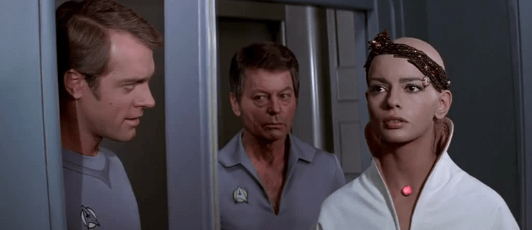 While Doctor Leonard “Bones” McCoy (Kelley), Lieutenant Commander Montgomery “Scotty” Scott (James Doohan), Lieutenant Pavel Chekov (Walter Koenig), Lieutenant Uhura (Nichelle Nichols), and Lieutenant Commander Hikaru Sulu (George Takei) all return in their familiar roles, there’s not a whole lot for most of them to do. Scotty gets a fair amount of time to shine in the early going as he introduces Kirk to the refitted ship and struggles to fix up the damaged engines and, while Bones only agrees to come along out of loyalty to his former captain, he plays a relatively influential role in pointing out Kirk’s disingenuous reasons for commandeering the Enterprise and commenting (in his trademark abrasive nature) on his rivalry with Decker. Unfortunately, there are far few moments for Kirk, Spock, and McCoy to interact, robbing the film of their amusing and love/hate relationship and making The Motion Picture a decidedly stale experience.
