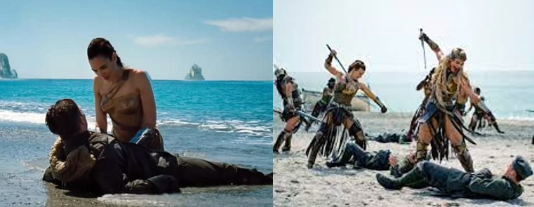 Wonder Woman begins in the present day, between the end of Batman v Superman and the start of Justice League (Whedon/Snyder, 2017), and is framed by Diana’s narration concerning her past after having a photograph of her time in the First World War sent back to her by Bruce Wayne (Ben Affleck). From there, the film flashes back over a hundred years into the past and to the secluded island paradise of Themyscira where we see a young Diana (Lilly Aspell), emulating the ways of her warrior sisters and yearning to begin her training as a warrior. Diana’s mother, Queen Hippolyta (Nielsen) is vehemently against Diana becoming a fighter; instead she wishes that Diana would be better served learning the ways of peace and tolerance. To emphasise the foils of war and conflict, she tells Diana a harrowing story of Zeus’s son, the warmongering Areas, influencing the hearts and minds of man into bloodshed and his subsequent slaughter of the Greek pantheon. After defeating Ares, Zeus created Themyscira with his dying breath to shield them from the outside world so that their natural ways of peace and love could prosper far away from the easily manipulated ravages of Man.