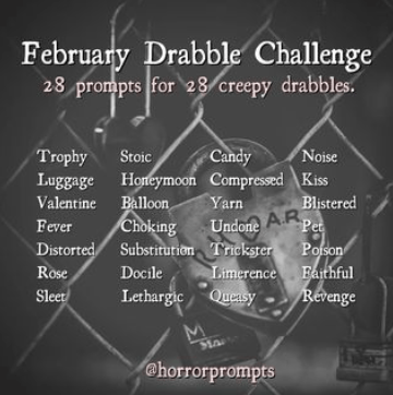 Horror Prompts’ Gillian Church has created 28 single-word prompts and challenged writers to write a horror drabble for each. A drabble is a story of exactly 100 words, no more, no less (not counting the title).