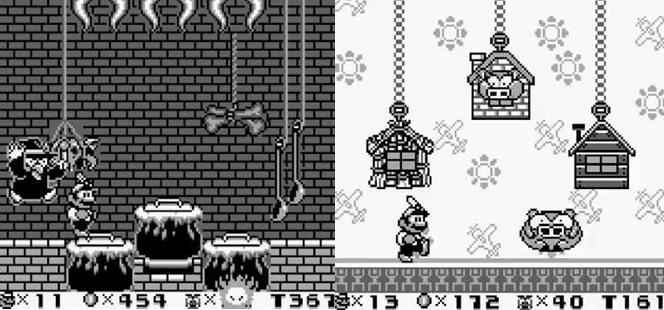 In Mario Zone, you’ll battle the Three Little Pigs, who come at you one at a time using rolling and bouncing attacks. I can’t say too much about this one as I just tossed fireballs at them relentlessly and bounced on their heads to beat them in seconds but I can’t imagine them causing you too much trouble. Macro Zone has you battling a Sewer Rat that darts in and out from pipes and clambers all over the walls and ceilings of the arena to drop down on you; this one can be tricky because of how fast the boss is but, again, the Fire Flower will make short work of it. Finally, in Space Zone, I took on a familiar face as Tatanga, the final boss of the first game, returns for a rematch. As this battle takes place in the low gravity of the Moon, it can be tricky to dodge between Tatanga’s two energy bolts, each of which has a different attack pattern, and his tendency to stay on the top corners of the screen makes using your fireballs much more difficult. Thankfully, he also tries to dive bomb you, leaving him wide open for attack, and he’s far weaker than in the last game, going down in just three hits like every other boss in the game. Similarly, the final battle against Wario is a much grander and elaborate fair than the final boss of Super Mario Land; as if running the gauntlet of Wario’s many traps and hazards and battling multiple floating Wario faces wasn’t enough, Wario (here a much bigger, monstrous figure than usually depicted) has three phases to his boss battle. In the first, he charges and stomps around the throne room trying to squash you and causing crystal balls to fall from the ceiling. Next, he grabs a Carrot to become Bunny Wario and takes refuge at the top of the screen before dropping down onto you and, finally, he becomes Fire Wario and launches fireballs at you while also jumping at you. While you have to take on all three phases one after the other, you can grab power-ups between each one and, again, Wario is defeated in three hits each time so, while this is easily the longest and most involved boss battle in the game, it’s no mean feat.