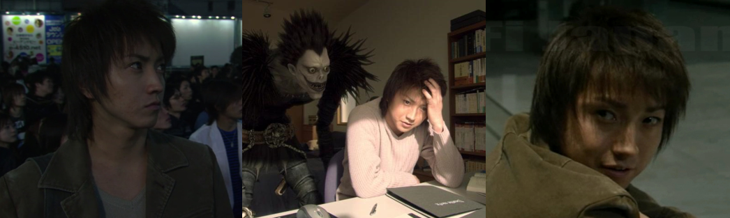The film follows university student Light Yagama, a young prodigy wo dreams of joining Japan’s National Police Agency and working alongside his father, Detective Superintendent Souichirou Yagami (Kaga). A highly intelligent young man, Light is something of a brash youth who believes he’s smart enough to justify skipping years of on-the-job experience and intuition. Strongly opposed to criminals and in favour of swift, uncompromising justice, Light hacks into the police database and is disheartened to see criminals slip through what he perceives as a broken system, one that he can strengthen and make more efficient. The Death Note gives him the power to do that; initially afraid of Ryuk and sceptical, he tests the books’ power and is stunned at first but soon gets into the habit of offing known criminals. Light’s crusade doesn’t simply stop at murders and rapists; he judges anyone and everyone for their crimes and targets corrupt politicians and, eventually, anyone who threatens to get in his way or expose him. Once the deaths become a regular thing, the press and public have a field day; dubbing the one responsible “Kira” (a Japanese approximation of the word “killer”), cults and online followings start to crop up praising Kira for doing God’s work and punishing the wicked, seeing him as a saviour and begging him to punish more evildoers. This goes both ways, though, as there are also those who see Kira as being just as bad, if not worse, than those he targets but his impact is widespread; bullies stop harassing students and wrongdoers are scared shitless, but even those who “praise” Kira are stunned when the vigilante force strikes down those who dare speak up against him in public. Without a doubt, the power of the Death Note and the fanatical nature of Kira’s followers inflates Light’s ego to breaking point; he sees himself as the saviour of the world, the divine hand of God, and as the only one capable of brining peace, order, and justice to an increasingly unfair world. For all his lofty talk, however, Light has a selfish, vindictive side to him that skews much of good his killings may do; he hopes to use the crisis as a means to fast track his appointment to the National Police Agency and goes to any means necessary to ensure he’s positioned as the only one capable of stopping the mysterious Kira.