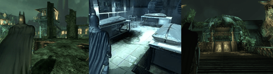 The island is home to a high-tech penitentiary, a dilapidated mansion, a dock, a hospital/morgue, a cemetery, and even has a large botanical garden to visit. Each area is suitable foreboding and shows signs of wear and tear (to say nothing of death and anarchy from the breakout of the inmates) and, despite the overwhelming use of blacks, greys, and darkness, stands out from each other through their unique layouts and gameplay mechanics. The island is also home to a vast network of sewers and caves; Batman has even set up a small Batcave on the island, where you’ll travel a few times to acquire upgrades, but these stone catacombs are by far the worst areas to explore in the game. The sewer system that Waylon Jones/Killer Croc has taken as his home isn’t too bad but the caves are dark and crumbling, meaning that your grapnel gun is all but useless and you’re forced to rely on Batman’s jumping skills. For the most part, these are serviceable, but the game’s focus is not on precision platforming so it can sometimes be a pain to get Batman (and the camera) pointed in the direction you need to go. When you later revisit these areas to mop up any unsolved riddles, it’s easy to get lost and confused and it’s a shame that the game doesn’t give you the option to fast exit an area or building from the map screen as there’s nothing worse than venturing deep into the catacombs and then struggling to find your way out.