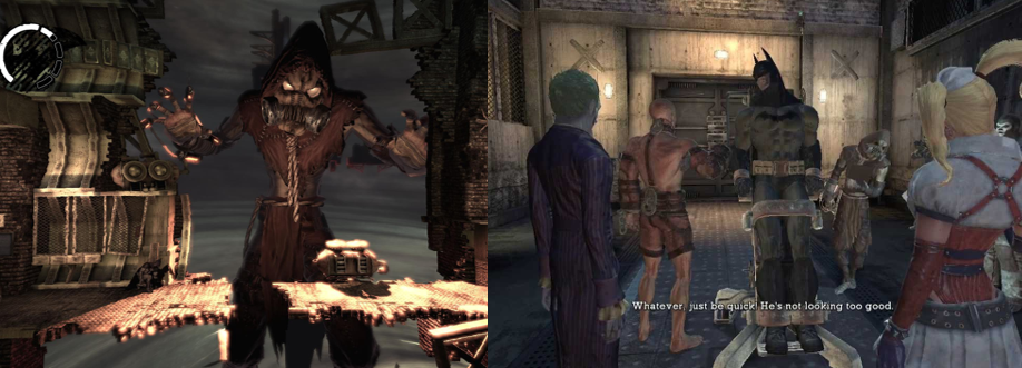 While the game is tight as a drum in terms of its stability, there are noticeable times where you’ll have to sit and wait as the next section loads and it can sometimes be a little too easy to get caught on the environment or botch a ledge grab but these moments are few and far between. By far the game’s most impressive sections, though, are the nightmarish illusions and hallucinations brought about by exposure to Doctor Jonathan Crane/Scarecrow’s fear gas and toxins; these cause the game to warp, restricting your moment, perception, and controls, and transform the environment into a chilling recreation of Crime Alley or show Batman visions of his dead parents and allies. This leads to a series of really unique, 2.5D sections where you must navigate a disparate hellscape, avoiding the Scarecrow’s gaze and trying not to get too freaked out by his Freddy Krueger-like appearance or Batman’s character model briefly flashing to that of Scarecrow’s. Easily the most memorable moment of all of these sequences is the moment the game abruptly appears to crash and resets on you, only to restart with a recreation of the game’s opening cutscene with the Joker delivering a manic Batman to Arkham while his villains taunt and jeer at him.