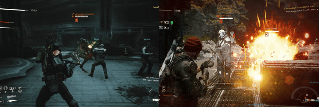 It’s pretty easy to burn through your ammo, and to see your health whittled down to nothing from surprise attacks; Xenomorphs come in a number of varieties, from exploding aliens to acid spitters, to the larger drones who act as bosses and mini bosses. If that wasn’t bad enough, you’ll also have to contend with synthetic enemies who use cover tactics and weaponry similar to yours, forcing you to find ways to shoot around their armoured variants and take cover from their grenades, though the androids and the aliens will attack each other, which can be useful. Graphically and aesthetically, Aliens: Fireteam Elite very much evokes the atmosphere and presentation of Aliens; everything from the Marine’s hokey dialogue, the dark and dingey interiors and corridors, and the presence of recognisable weapons and technology are all pulled straight out of James Cameron’s movie but the game doesn’t stop there. You’ll eventually take a trip down to LV-895, a barren alien world where large, stone-like spaceships and environments are being plundered by Weyland-Yutani; these sections recall the Engineer architecture of Ridley Scott’s Alien films, as is a staple for most Alien videogames, and the game generally looks and sounds pretty good. That is, of course, if you ignore the cutscenes, dialogue, and character models; these are noticeably poor quality and remind me more of an Xbox 360-era videogame, but actually worse as there’s no lip synching and the amount of pop up, A.I.. tomfoolery, and graphical glitches (even when playing offline) make gameplay an awkward and unstable experience. The game tries to offer dialogue trees at certain points as characters drone on and on in a desperate attempt to give some context, but you can skip all of this as it basically means nothing; if you have an objective beyond shooting everything in sight, the game usually tells you, but it’s not always clear where you have to actually go to activate certain consoles so you can end up stuck in a never-ending shootout if you’re not paying attention.