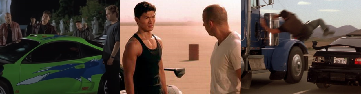 Dominic Toretto (Diesel) enjoys the adrenaline of street car racing and his fans treat him like a rock star. After a blazing encounter with the ruthless Johnny Tran (Yune), Dom decides to take racing newcomer Brian (Paul Walker) under his wing, unaware that Brian is an undercover cop who’s investigating both Dom and Tran’s involvement in money laundering and hijacking.