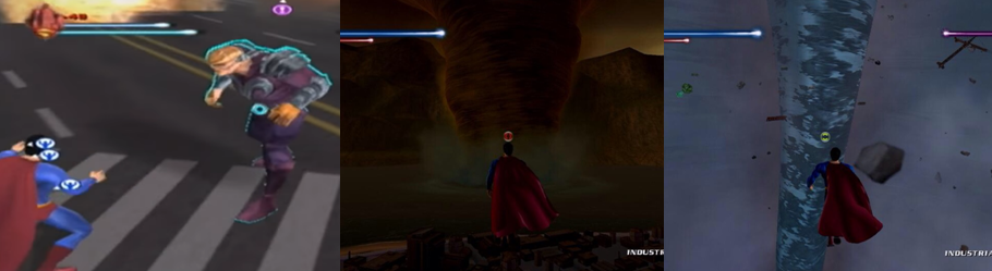 In the game’s final chapters, Mongul arrives on Earth looking for revenge, bringing with him an army of Phalanx warriors and Overcast, with all three spawning into the map at inopportune times to cause massive amounts of damage. Battling Overcast’s gigantic form while also juggling an endless swarm of Phalanx warriors and contending with Mongul is a hell of a tall order but, thankfully, you can (and totally should) focus on Mongul alone in order to compete this story mission and can worry about the rest later. The opening of the game teaches you that Mongul is a cheap bastard who likes to constantly block your attacks and that’s true in the endgame as well but he’ll also attack citizens and cars and spawns in more and more minions the more damage you do. Personally, I found it easier to just keep throwing cars at him until he goes down. Ultimately, the game concludes with a series of deadly tornados threatening the city; you must blow and freeze them away, put out the fires they cause, and rescue citizens from their path before contending with Superman’s most deadly and iconic foe…a giant tornado! To dispel this swirling mass of destruction, you must blast its core with either your heat vision or freeze breath all while cars and debris relentlessly slam into you but, with enough patience, it’s pretty simple to bring this chore of a game to a close.