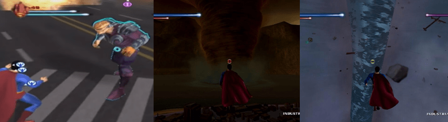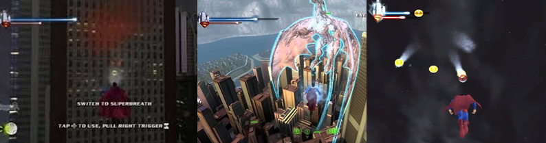 Gameplay gets extremely repetitive very quickly and the game’s pace is all over the place; you cannot progress the story until you’ve defended Metropolis from a certain number of random attacks, which occur either so sporadically that you’re flying around aimlessly like an idiot or happen so often and have so many enemies that it becomes annoying. You cannot just fly away from these incidents and ignore them, either, as that’ll cause a game over but, even though you’re playing as frickin’ Superman, you often end up getting bashed all over the place by a barrage of attacks and are forced to mash buttons to get Superman’s useless ass back into the fight. A certain amount of strategy is required to take on enemies, who can race away across the city or are vulnerable to certain superpowers, but it all gets very frustrating and mind-numbing very quickly. Incidents where you have to blast meteors from the sky, put out fires, save citizens, or tackle incoming tornados help to break the monotony up a bit but they’re few and far between.