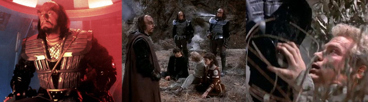 Spock’s death is like a heavy weight baring down on the entire Enterprise crew; Commander Pavel Chekov (Walter Koenig) reluctantly takes Spock’s place as interim Science Officer for their journey back to Spacedock, made possible thanks to chief engineer, Commander Montgomery “Scotty” Scott (James Doohan). Although the Enterprise suffered massive damage in the last film, Scotty fixes it up for the trip back and promises to fully repair it within two weeks (rather than eight). Despite receiving a promotion to Captain and being assigned to Starfleet’s greatest ship yet, Excelsior, Scotty is dismayed about the Enterprise’s decommissioning since he has put so much of himself into the ship and is only too happy to assist Kirk in stealing the Enterprise. Although Commander Nyota Uhura (Nichelle Nichols) and Lieutenant Commander Hikaru Sulu (George Takei) are instrumental in freeing Bones from Starfleet custody (Sulu even gets a quick fight scene out of it) and stealing the Enterprise, the crew still don’t get much to do other than stand around, frantically pilot the ship, and react with dismay when David is killed, though they willingly stand by Kirk out of sheer loyalty despite knowing that they will all face a severe court-martial for their actions. Since the Genesis planet is such a scientific wonder and a controversial subject, Morrow forbids any talk or travel to the planet. David and Saavik are onboard the science vessel Grissom and marvel at the various terrain, weather, and geological properties of the planet. Notably absent is David’s mother, Doctor Carol Marcus (Bibi Besch); Kirk takes her place as the narrator of the Genesis Device and David is now the principal scientist behind the technology, which is revealed to have used experimental “protomatter” to stabilise the device and create “life from lifelessness”. Despite her cold, Vulcan logic, Saavik is clearly disgusted by David’s recklessness, which has resulted in the planet becoming violently unstable and teetering on the bring of destruction, spawning mutated parasitic lifeforms, and had the unexpected side effect of restoring Spock’s body and forcing him to rapidly advance from a child, to a youth and, finally, to a full-grown adult. Essentially a mindless, agonised, and confused form, Spock is comforted throughout his tumultuous changes by Saavik but incapable of anything other than tortured screams as his body rapidly changes and he suffers the painful effects of “Pon Farr”. The Search for Spock introduces some interesting twists to Vulcan society; it is apparently the way of their species to transfer their consciousness to another before death, but it’s not made clear how their katra is normally restored to their body as the ritual is said to not have been performed since “ages past”(“and then only in legend”, hardly inspiring confidence) and it’s not as if dead bodies are routinely restored to life like Spock’s was here.
