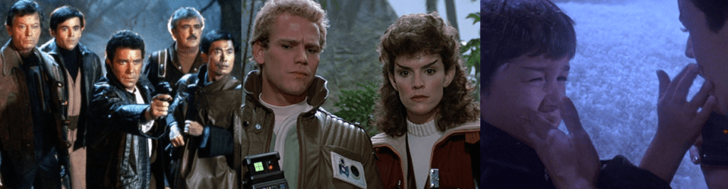 There’s a stigma that all the odd-numbered Star Trek movies are “bad”. I can somewhat understand this given how terrible the first film was and how some seem to suffer more than others, but I’ll never concede that the ultra-dull Star Trek VI: The Undiscovered Country (Meyer, 1991) is better than The Final Frontier (because…it’s not!) and, similarly, The Search for Spock also bucks the trend a bit. I think the biggest issue facing this film is that it followed the universally lauded Wrath of Khan, and the entire thrust of its plot is undoing one of the most memorable and impactful moments of that film (and in all of Star Trek), all of which place the film at a severe disadvantage from the get-go. I think viewing it now, with the benefit of hindsight and in the grand scheme of things, helps to elevate The Search for Spock’s stock somewhat; the film is a great continuation of the themes and characterisations established in the last film, and aims to be a feel-good coda to Wrath of Khan’s dour ending. The conclusion of The Search for Spock largely delivers on this, with the crew’s elation at Spock’s return being evident but the film is actually one of he bleakest and most tragic Star Trek movies. David, a character who really got the shaft and could’ve been moulded into a young, fresh-faced addition to the aging cast, is unceremoniously killed before we ever really get the chance to know him and what could be more impactful than the death of a beloved character like Spock than seeing the Enterprise go down in flames? The film also seems to undo or walk back many of the messages of the last film, with the needs of the one now outweighing the needs of the many, but the underlining message of The Search for Spock seems to be one of hope. If you have a chance to redeem a mistake or save a loved one, you must do everything in your power to fulfil that, whether that means defying your superiors or sacrificing your livelihood. It’s a poignant theme that definitely underscores the bond between Kirk and Spock, but I can understand how it’s a little muddled amidst all the tragedy that befalls Kirk in service of this mission. Ultimately, The Search for Spock is a pretty decent third entry; it’s worth it for the amusing moments, Christopher Lloyd’s stellar performance, and the continuation of Kirk’s character development into a more jaded individual. While it doesn’t quite live up to the standards of the last film, I still rather enjoy it as one of the more under-rated Star Trek films.