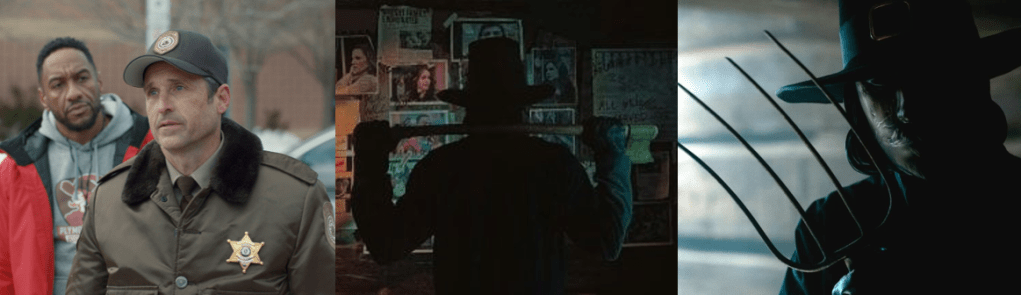 When a mysterious masked individual known as “John Carver” starts tagging them in ominous Thanksgiving-themed social media posts and the bodies start piling up, the group scrambles to find information that may help identify the killer. Each of them is questioned by Sheriff Newlon for more details on the massacre and Jessica even accesses her dad’s personal computer to view the backup CCTV footage, which not only identifies Carver’s potential victims but also casts more suspicion on Ryan. Joined by an equally suspicious and somewhat rude new deputy, Bret Labelle (Jeff Teravainen), Newlon has been haunted by that night for a whole year, frustrated at a lack of tangible leads and frantic to protect Carver’s potential victims. It quickly becomes apparent that Carver is targeting specific individuals from the riot, including mouthy waitress Lizzie (Amanda Barker) and Manny, and he delights in taunting Jessica and her friends by tagging them in explicit content on social media, something the press and the townsfolk quickly react to. Since the film takes place in Plymouth, Massachusetts, the veritable birthplace of Thanksgiving, John Carver masks and costumes are everywhere, easily allowing the killer to blend in and his ability to set up fake streaming locations and mask is IP address constantly throws Newlon off the scent. The movie makes a point of showing Carver at work in his hideout, an abandoned, very 1970’s style house, sharpening his axe and obsessing over his wall of photographs and newspaper clippings and declarations of revenge. A silent killer who communicates only through online taunts.kr a voice modulator, he stalks his victims and toys with them and is both surprisingly creative and surprisingly emotive with his body language. When he comes for Manny, he makes a point to spare and even feed his cat, and he’s always shown handling his axe in a merry way and exploding in a rage whenever his prey escapes him. Sadly, I don’t think the film leans into the anonymity of the killer as much as it could; Thanksgiving is approaching fast so there could’ve been more paranoia and suspicion with randomers dressed as John Carter, but this only really happens during the parade, where Jessica and her friends work with the cops to set a trap for the killer.