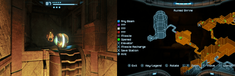 Tallon IV is a sprawling, interconnected landscape with many secrets to find; many of these increase your maximum health and ammo or award you with upgrades to your arsenal, while others hide Chozo Artifacts. There are twelve to find and you’ll need to locate them all to reach the final section of the game, which is a bit annoying as it unnecessarily pads the game out and basically forces you to use a guide since the hints given are quite obtuse. Finally, you’re encouraged to scan everything in sight; the more you scan, the more lore you unlock, and the more extras are accessible from the main menu, including music tracks, concept art, and character models for both the original and Remastered version of the game. Beating the game on any difficulty setting unlocks “Hard” mode; it’s recommended that you make a copy of your save file ahead of venturing into the final area, though, as trying to start a new game on “Hard” mode will erase your existing save file. Finally, you’re awarded with a different ending, and a different view of Samus in her suit, depending on how fast you beat the game and how close to 100% completion you are when you defeat Metroid Prime.