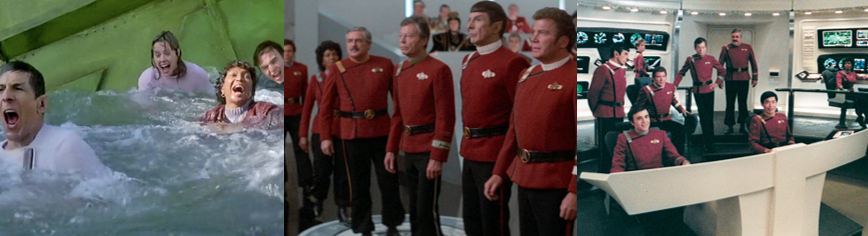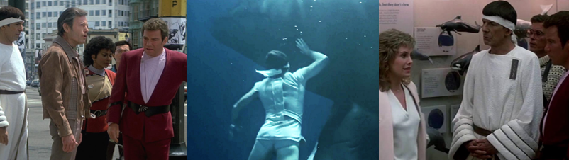 Although Kirk could head to the open sea to get the whales they need, he’s determined to take George and Gracie since it’s not only “better” for everyone but also much easier. Scotty makes the modifications to the Bounty, Sulu acquires a helicopter, and Uhura successfully recharges the Dilithium crystals, but Chekov is injured escaping military custody and the window for acquiring the whales becomes narrower when they’re unexpectedly released early. Gillian is finally convinced to trust Kirk when she learns of the whales’ early release; beamed aboard the Bounty, Gillian quickly overcomes her confusion and awe of the future technology to provide Kirk with the means to track the whales. However, he makes a detour to rescue Chekov from the hands of “butchers” (with even Spock voicing his approval of the effort since it is the “human thing to do”). Although Kirk insists that Gillian can’t come with them, she leaps into his transporter beam and accompanies the crew as they track George and Gracie to Alaska, where they arrive in time to defend the whales from pirates, transport them aboard, and successfully return to the future based on Spock’s “best guess”. Upon arrival, the Bounty is immediately crippled by the probe and crashes into San Francisco Bay where, after a dramatic pause, they answer the probe and cause it to leave Earth space, thus ending its threat and restoring power to the ships it crippled. In the aftermath, Kirk and his loyal crew face the court martial but, in light of their heroic activities, Starfleet shows leniency. Kirk is demoted to Captain and given command of a new ship, the USS Enterprise-A. After bidding farewell to Gillian as she disappears forever to join the crew of a science vessel, Kirk and his crew return to the bridge of their iconic ship and prepare for new adventures into the great beyond.