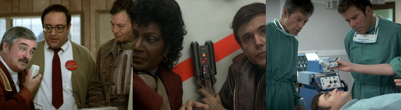 Spock’s mind meld allows him to explain the situation to the whales and gain their consent, and sparks Gillian’s curiosity to the point where she throws caution to the wind and relates her concerns about the whales’ safety. Despite Spock’s amusingly blunt honesty and his notable charisma, Kirk is forced to tell Gillian the truth to win her over and she’s surprisingly chill about his crazy story, primarily because it’s the only viable option she has to keep her beloved whales safe. One positive about The Voyage Home is that it actually gives the rest of the crew something to do for a change; the crew split into teams and sent across San Francisco with specific tasks relating to the success of their mission. Commander Montgomery “Scotty” Scott (Doohan) teams up with Bones and Lieutenant Commander Hikaru Sulu (George Takei) to reconfigure the Bounty’s cargo bay into a whale enclosure, while Commander Pavel Chekov (Koenig) and Uhura are tasked with locating Naval ships to recharge the crude Klingon Dilithium crystals that power the Bounty. Though confused by the era and time displacement, the crew eventually bungle their way to success despite the natives being confused by Chekov’s questions regarding “nuclear wessels”. Alongside Bones, Scotty poses as a professor and meets with Plexicorp manager Doctor Nichols (Alex Henteloff) and provides him the formula for “transparent aluminium” in exchange for using his facilities to build the whale tank in an assumed example of a predestination paradox (i.e. Scotty was fated to provide the formula). While Sulu is relegated only to acquiring and piloting a helicopter to transport this tank, Chekov ends up hospitalised while acquiring the nuclear photons, resulting in a brief bit of drama as the crew infiltrate the hospital so Bones can wake him from his coma.