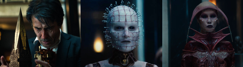 Riley pours through Voight’s diaries and learns of the different gifts offered by the puzzle box, believing that she can bring Matt back by asking for his resurrection. When she learns that that the Cenobites are happy to slaughter one of their own as a sacrifice, Riley desperately plots to use Voight’s mansion to lure in the remaining demons and stab them with the box, sparing herself and her friends. While Voight has transformed his mansion into the perfect trap for the Cenobites, keeping them and their chains at bay with a series of gates and doors, Riley’s horrified when Voight, half-mad from his constant torment, lurches from the shadows and stabs Colin to solve the box. She’s even more enraged to learn that Trevor was working for Voight all along, though is numb to his claims that he tried to warn her off and blind to the fact that he did everything he could to keep Riley and her friends from being harmed. When Colin gets tied up in the Cenobites’ metal wire and prepared for a filleted, Riley first begs the Gasp to spare him then offers Trevor as a substitute, stabbing him in the gut when he tries to retrieve the box from her and sparing Colin from a gruesome fate. Meanwhile, Voight finally gets the audience with God he so longed for when Leviathan descends from the tumultuous skies. Confronted by the Hell Priest, Voight demands to be relieved of his pain so he can finally die and is distraught to learn that his gift cannot be taken away, merely exchanged. Impassively stunned that Voight is displeased by his agony, the Hell Priest offers to grant him that which he has truly coveted his entire life: power. Voight readily accepts and is giddy with euphoria when the archaic device falls from his chest and his wounds heal, restoring him and freeing him from his pain. His elation is short-lived, however, as he’s summarily impaled by Leviathan’s gigantic chain and dragged into the heavens to be granted the Cenobites’ greatest gift. With Voight taken away to be brutally transformed into a new Cenobite, a process that sees his flesh peeled back and his body and mind horrifically altered by Leviathan’s unknowable lights, Riley has her own confrontation with the Priest. Although she’s offered her brother, Riley realises that Matt is gone and that the Cenobites gifts are twisted promises and choses to live with her guilt. The Hell Priest is pleased since choosing a life of regret with bitter and brief suffering is almost as torturous as their barbed chains. The Cenobites then vanish and Riley leaves the puzzle box behind, her and Colin wondering if they made the right choice in the end.