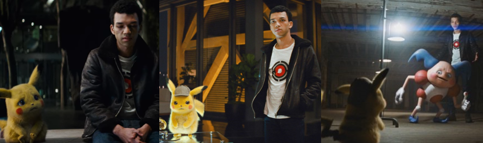 Again, this isn’t something new; the animated features often include characters either wary of or disinterested in Pokémon. Tim was an avid Pokémon fan as a kid; young Tim (Max Fincham) followed and participated in battles, collected the cards, and lived the Pokémon life. However, that all changed when his mother died; this drove a wedge between him and his father, who threw himself into work with the Ryme City Police Department, leaving Tim to be raised by his grandmother (Josette Simon) and grow up resenting both his father and the Pokémon he preferred to spend time with. Rather than growing up to be a Pokémon Trainer, Tim takes up a tedious job in insurance and has no interest in partnering with a Pokémon but ends up lumbered with his father’s cheeky Pikachu partner when he travels to Ryme City following his dad’s sudden death. Tim’s clearly shaken by his father’s demise and wrestling with conflicting emotions. He struggles to express himself when meeting with Harry’s friend, Lieutenant Hideo Yoshida (Watanabe), who relates that Harry always loved his son. This is little comfort to Tim, who’s clearly rattled at being denied the chance to get some closure and just wants to get home as quickly as possible. The deerstalker-garbed Pikachu completely upends that, however, since Tim can strangely understand the pint-sized detective. Tim initially reacts to this with shock and horror, believing he’s either going mad or has been adversely affected by a mysterious purple gas he discovers in Harry’s apartment. Even when he accepts that no one can understand Pikachu but him, Tim is reluctant to assist the Pokémon in figuring out what happened to his partner. Believing he lacks the same detective skills and expertise as his father, Tim repeatedly shuns Pikachu, who latches onto him out of desperation since he’s suffering from amnesia but feels it “in his jellies” that there’s more to Harry’s death than the media and the police want to admit. Pikachu’s insistence is infectious, and Tim reluctantly agrees to help with his investigation, aiding Pikachu by talking to humans for information while Pikachu interrogations Ryme City’s Pokémon. Though he’s uncomfortable carrying Pikachu on his shoulder and indulging his hairbrained theories, Tim proves a great asset when they question Harry’s informant, a Mr. Mime, leading to a hilarious moment where Tim threatens (through pantomime) to light the Pokémon on fire!