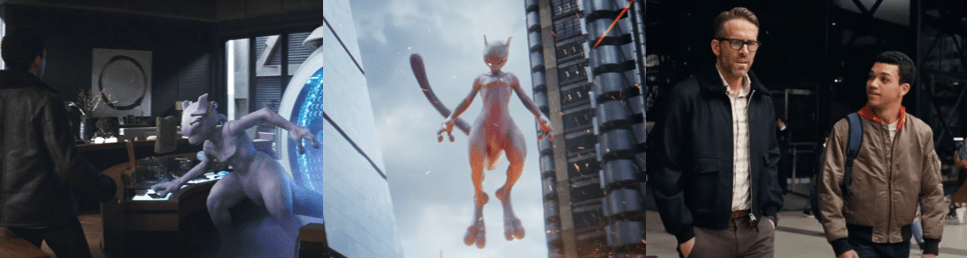 Sadly for me, the Pokémon who suffers the most from this is Mewtwo. Appearing sleek and eel-like, it lacks the armoured, menacing appearance it usually exudes, though it’s no less threatening in its actions. Once again captured and experimented on, Mewtwo flies into a rage and destroys its facility, but is unable to save Harry from the Greninja attack. However, his loyal Pikachu offered to house Harry’s consciousness until Tim could be brought to Mewtwo to reunite Harry with his recuperated body. These revelations all come after it’s revealed that Clifford’s Ditto has been posing as Roger all along (or, at least, for much of the film) and that Clifford was behind everything. Interestingly, Clifford’s goal isn’t world domination or power; it’s to transfer his consciousness out of his crippled body and into the most powerful Pokémon of all. Successfully possessing Mewtwo’s body, Clifford unleashes the R gas throughout Ryme City using a balloon parade, turning all Pokémon feral and leaving them susceptible to his Psychic powers. Again, this isn’t to control them, but rather to use Mewtwo’s hitherto-unknown ability to merge a human’s consciousness with a Pokémon to literally unite the two species in a forced harmony and allow humanity to “evolve” into a better form. While the mismatched Pikachu battles Mewtwo atop the balloons, having rediscovered his Electric-based attacks, Tim fends off Ms. Susan, who assumes various forms (including an unsettling masquerade of Lucy) and removes Clifford’s control device from his prone body, breaking his connection to Mewtwo. Sadly, Lucy isn’t much help during all this as she’s infused with her Psyduck while trying to get the panicked civilians to safety, but she’s charged by the real Roger to break the story after Mewtwo restores everyone to normal. This includes Pikachu and Harry, who returns to full health as Ryan Reynolds and is delighted when Tim decides to stick around and build bridges with his estranged father.