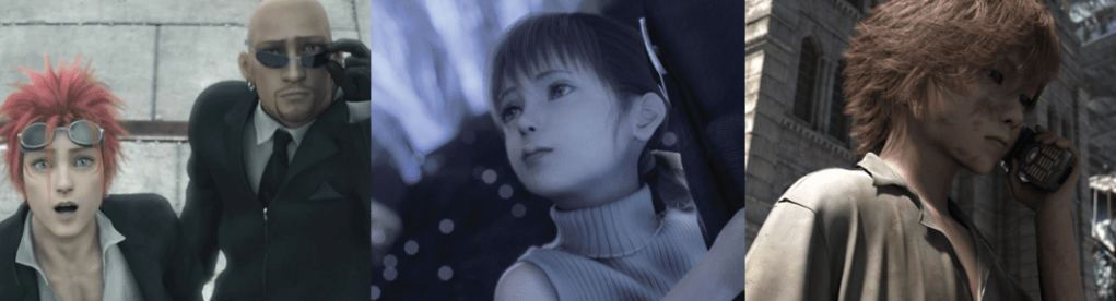 Two years after Final Fantasy VII (Square, 1997), Cloud Strife (Burton) exiles himself to avoid spreading the Geostigma disease he and many children are suffering after Sephiroth (Newburn) contaminated the Planet’s core. However, when three Remnants of Sephiroth – Kadaj (Staley), Loz (Tatasciore), and Yazoo (Wittenberg) – kidnap the diseased children to resurrect Sephiroth, Cloud reunites with his friends to defend the world once more.