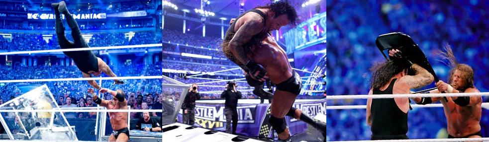 To celebrate the Undertaker’s illustrious career, I’m looking back at his WrestleMania matches against “The Heartbreak Kid” Shawn Michaels and Triple H.
