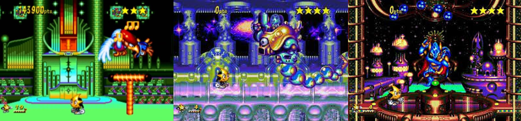 Visually, Ristar is one of the most impressive Mega Drive games. The colourful graphics, deep and detailed backgrounds, and vibrant presentation remind me of Knuckles’ Chaotix (SEGA, 1995), as do the wacky Round intro cards, story text, and sprites. Though one of gaming’s oddest characters, Ristar is full of life, sporting a determined frown, gleefully smashing enemies, yelping when hit, and blasting about when launched. Ristar sports a few idle poses that change in Round 4 and Round 5 to show him bopping along to the beat and struggling with the heat, respectively. The game’s story is very simple (and changes depending on your region) but is beautifully brought to life by both text and large, partially animated sprite art. Despite the title screen drawing immediate comparisons to Sonic the Hedgehog, Ristar is like a mish-mash of Sonic, Rocket Knight, Gunstar Heroes (Treasure, 1993), and Disney’s various 16-bit titles with both its gameplay and visuals, though oddly promoting precision platforming rather than fast-paced combat, perhaps to better showcase the stunning, cartoonish visuals and bizarre environments. While there’s no ending cutscene, stills showcase the ending and key moments during the credits and Ristar busts out a fitting victory pose upon defeating each boss and clearing the game. It’s a shame that his enemies aren’t as interesting, with players mostly smashing boring coloured Orblets, Unfortunately, Ristar can’t duck or look up, has no other combat options, forms, or power-ups, and his hit box is quite large. This is compounded by the odd decision the delay between grabbing health-restoring stars and Ristar’s health being restored, meaning you can grab a star and die before it’s added to your tally! As visually impressive as the game is, though, I was disappointed by the less than memorable soundtrack that cheaply recycles sound effects from Sonic 3 & Knuckles (SEGA Technical Institute, 1993/1994) during the final boss battle.