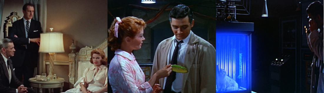 Set in Montreal, Quebec, The Fly opens with all the major action having already taken place and aspiring scientist André Delambre (Al Hedison) crushed by a hydraulic press at his family factory. His equally wealthy brother, François Delambre (Vincent Price), is shocked by this but knocked for a loop when André’s beautiful wife, Hélène Delambre (Patricia Owens), confesses to killing her husband. Stoic and apparently remorseless, Hélène openly admits to the act, refusing to paint herself as a “murderess” as André willingly placed himself under the hydraulic press but confessing to activating the machine twice to crush his head and arm. Having adored his brother, his curious young nephew, Philippe Delambre (Charles Herbert), and having secretly been in love with Hélène for years, François is desperate to know why she’s saying such awful things and to get to the truth of the matter. François aids Inspector Charas (Herbert Marshall) in this endeavour, eager to understand why Hélène is so desperate to find and kill a white-headed fly. As Hélène faces either hanging for murder or being committed to an asylum on the grounds of insanity, François pretends to have captured the fly and threatens to give it to Inspector Charas unless Hélène tells the truth. This breaks Hélène’s crazed demeanour and she reveals she’s been pretending to be mad to protect Philippe. Assuming that François has seen the truth of the fly he’s supposedly caught, Hélène agrees to tell him and Inspector Charas the whole story, meaning most of The Fly is framed as flashback to a couple of months ago, when the Delambres’ were a healthy and happy family very much in love and enjoying the opulence of their home.