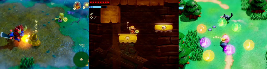 As in every Legend of Zelda videogame, there are numerous Heart Pieces to be found here. You get full ones for defeating each boss, and another heart for every four pieces you find, with forty of them spread across the map. There are also 150 Might Crystals to find which, when taken to Lueberry, will upgrade your Energy Gauge and Swordfighter form. You only need 125 to upgrade everything but, with all 150, Lueberry builds a machine to fill the Energy Gauge at will (not that you’ll need it by then). There are also sixty-nine (…nice) smoothie recipes to make, with you earning new accessories for crafting set amounts, and twenty-eight accessories to find, buy, or earn. There are eleven outfits to wear, though three are unlocked using Amiibos and one is only awarded after finding all twenty-five stamp locations. Each time you fill a stamp card, the Stamp Guy gives you a reward, such as a bottle or golden egg, and finding all twenty-five lets you dress as him. After finishing the game, you get a stamp on your save file and are free to finish up any side quests or tasks, with the map expanded to show any Echoes or collectibles you’ve missed. There are fifty-one side quests, from showing monsters to NPCs, finding a stray horse, talking to local cats while wearing cat clothes, tackling options side dungeons and mini bosses, ferrying items back and forth, locating a possible spy in the Hyrule guard’s ranks, and playing hide and seek. You can also collect acorns for rewards, play the game in the more challenging “Hero” mode, or head to the Slumber Dojo to tackle timed challenges. These see you battling enemies with various restrictions (such as having no Echoes or items at the start, playing in darkness or against elemental forces, or having healing drinks banned) and endure boss rushes, with various awards gifted depending on how fast you complete each challenge (with the final reward being Link’s iconic green tunic).