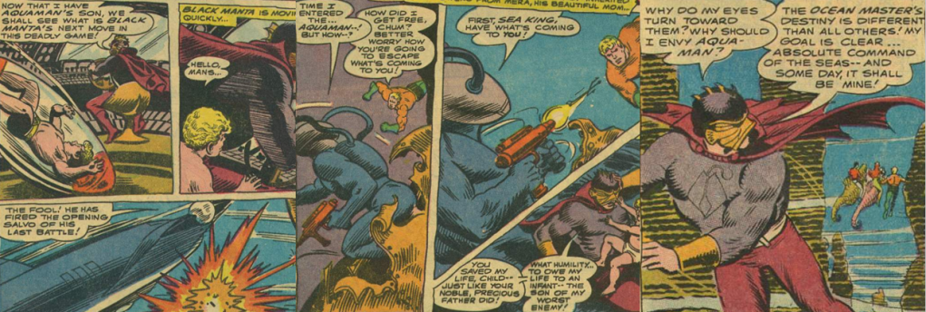 Although I grew up reading odd issues and random annuals from the 1970s and 1980s, this is the Justice League I mostly closely associate with. Superman (fresh off his brief stint as an energy being), Batman, Wonder Woman, Wally West/The Flash, Kyle Rayner/Green Lantern, Aquaman (in his best, most intimidating look), and even Patrick O’Brian/Plastic Man being included for some visual variety and laughs made for an impressive and powerful incarnation of the team. “Tower of Babel” pits this team against Rā’s al Ghūl, the “Demon’s Head” who fronts the League of Assassins and believes humanity is a danger. His anger at an aide accidentally dooming the Javan tiger to extinction only precipitates his latest plan to wipe out humankind, which begins with him playing spiteful mind games with his respected adversary, the Batman (whom he reverentially refers to as “The Detective”), by exhuming his parents. Rā’s then dispatches his daughter, Talia, to strike the Martian Manhunter with an explosive shell of strange nanites. Nearby, the Flash and Wonder Woman desperately fight a mysterious and aggressive forest fire, only to be amazed and horrified when the source turns of to be J’onn, his body engulfed in perpetual flames that the Flash extinguishes with his fantastic speed. Aquaman and Plastic Man are then attacked within the United Nations, Aquaman being gassed by a substance that makes him deathly afraid of water and Plastic Man frozen and shattered into a dozen pieces!