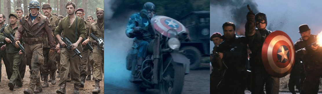 The super soldier serum is more than just a simple shot in the arm or a light show; in conjunction with technology provided by Howard Stark (Cooper), Erskine subjects Steve to a series of deep injections and a bombardment of “Vita Rays” that augment his physical stature and abilities far beyond those of a normal man. Now tall, muscular, and sporting a rapid metabolism, Steve is made a veritable superhuman but at the cost of Dr. Erskine’s life as Hydra agents strike following the procedure and cause the super soldier serum to be lost. Angered at being denied an army of super soldiers, Philips decides not to utilise Steve’s amplified abilities and he is, instead, reduced to touring the nation as the colourful “Captain America” to promote war bonds rather than fighting alongside the other troops. When Bucky and his unit are declared missing in action in Berlin, Steve disobeys Philips’ direct orders and goes in alone to rescue them; in the process, he meets his Nazi counterpart and learns of Hydra’s plan to attack major American cities with his Tesseract-powered weapons. Alongside Bucky and his unit, the “Howling Commandos”, Steve is officially drafted into the US army as Captain America and given an amazing suit of red, white, and blue and a circular shield made of the supposedly-indestructible “Vibranium” and sets out to put a stop to the Red Skull’s goals of world conquest. In the process, Steve earns not only the respect of his peers and fellow soldiers but also (after some awkward miscommunication) the love of Carter; however, his crusade against Hydra soon becomes as much of a personal vendetta as a mission to safeguard the world and Steve is soon forced not only into a desperate battle against the Red Skull but also into making the ultimate sacrifice for the greater good.