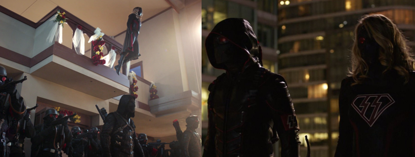 Of course, the intangible threat of the destructive anti-matter wave and the ominous fate that awaits Oliver and Barry isn’t the only threat facing the Arrowverse characters; throughout their journey across the multiverse to defend the Monitor’s Quantum Towers, they must battle against fittingly Grim Reaper-like “Shadow Demons” that, despite being easily destroyed, have the advantage through sheer numbers and their threat is escalated by the fact that Oliver was practically torn apart by them offscreen. Additionally, thanks to messing around with the Book of Destiny, Luthor manages to position himself as a man of incredible metahuman powers who first attempts to kill Supergirl in an effort to usurp the Monitor’s destiny and then, reluctantly and unwillingly, to join forces with the heroes. Lyla Michaels/Harbinger (Audrey Marie Anderson) also takes on a brief antagonistic role when she ends up falling under the influence of the crossover’s primary, physical antagonist, Mobius/The Anti-Monitor (Garrett), which causes her to betray and murder the Monitor against her will and set in motion the final days of all reality.