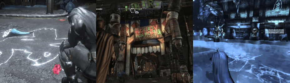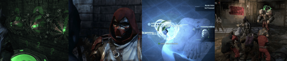 There are thirty Achievements on offer in the Deluxe Edition of the game, with one being awarded each time you defeat a boss or hit a continuous combo (up to 100). You’ll also get Achievements for solving detective cases, destroying Joker teeth, explosive bird cages, and replica black masks (which also unlock extras in the game’s gallery), and locating armour and full costume sets. Interestingly, there are some creative Achievements available too, such as dying from the Joker’s laughing gas, facing a different final boss each time, and defeating Grundy with the shock Batarang. While there are no Riddler Trophies, you can find and scan various clues to different criminal cases; some are hidden and others require your gadgets to uncover. What you really want, though, are the WayneTech crates containing the different Batsuit parts. Find all five of each to apply a new skin to the Dark Knight and be afforded additional perks, such as increasing your resistance to damage or just making you invincible! Although there are no Achievements tied to it, the Deluxe Edition offers “Normal” and “Hard” difficulties and you unlock “New Game Plus” after clearing the game, which carries over any Batsuits, clues, and unlocks you’ve earned but will overwrite your save data, take away your gadget upgrades, and present you with re-ordered boss battles and some new items.