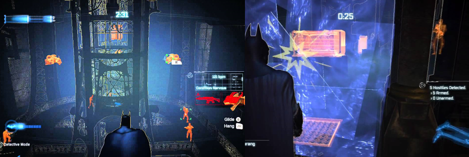 Given the 2.5D restrictions, you won’t be battling large waves of enemies and foes tend to come in manageable groups and only swarm from the background and foreground sporadically. There is no level-up system like in other Batman: Arkham games so you can often bypass enemies rather than fighting them, which is sometimes preferable given that the combat feels much clunkier than in the other games. Countering, in particular, can be a bit hit and miss at times. Knife-wielding thugs and those with stun batons cut through your defences surprisingly easily and Batman seems much weaker this time around. This means electrical currents and poisonous gas drain your health extremely quickly and Batman cannot withstand even a short burst of sustained gunfire. Although Batman doesn’t have to worry about gaining experience points and levelling-up, he can still improve his suit and gadgets by finding WayneTech crates. Similarly, you upgrade Batman’s “Rush” ability (something I struggled to understand but seems to do additional damage as his combo increases) or obtain gauntlets to increase your regular damage. There are numerous helpful autosave points and you can skip cutscenes when reloading, which is even better, but it can be very frustrating to fail again and again because you were spotted and got caught in a crossfire. Arkham Origins Blackgate tries to recreate the “Predator” sections of its bigger, better counterparts but these are both painfully limited and needlessly frustrating. Detective Mode highlight enemies and objects to distract them, and Batman can toss a snare to tangle goons when up high, but there are few options to avoid being spotted. Batman can still hop into floor grates, shimmy along ledges, or sneak behind enemies to take them down or can just dive kick them. Still, you’ll mostly rely on distracting enemies or take them out by dropping hazards into them or destroying the ground beneath them.