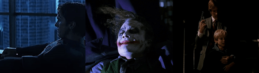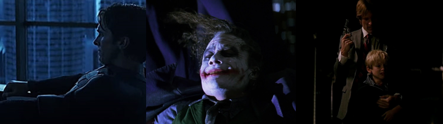 The Dark Knight represents how ingrained Batman’s iconography has become not just in the fictional world, but in ours. Just the fact that we got a Batman movie that omitted the character’s name entirely shows how synonymous this description is with the character, and it takes on a double meaning here since Batman is depicted (and, by the end, explicitly referred to) as a “Dark Knight”, a necessary evil to keep Gotham in check, since a “White Knight” has little chance of surviving the crime and corruption that infests the city. Indeed, Bruce is actively considering hanging up the cape and cowl when he sees how effective and unanimously beloved Dent is. Dent is the hero Gotham deserves without a masked persona, giving Bruce a sliver of hope that he can make good on his promise to be with Rachel once the city no longer needs Batman, but he vastly underestimates the destructive influence of the Joker, who perfectly encapsulates Gordon’s previous concerns about “escalation” through his unique brand of anarchy. The Joker is depicted as a man even Bruce “doesn’t understand”, someone beyond reason, intimidation, and bribery, and we see this when he shows no fear when interrogated by Batman and simply cackles with glee when the Dark Knight unloads on him since the Joker always has an ace up his sleeve (both literally and figuratively). Thus, the film very much focuses on the “battle for Gotham’s soul”, with the Joker shifting his motivation towards opposing and destroying not just the city officials and authority figures, but Batman himself since he’s the ultimate symbol of incorruptibility, to the point where he and his allies allow five people to die rather than reveal his identity because the Batman has become such an iconic force for justice within the city.